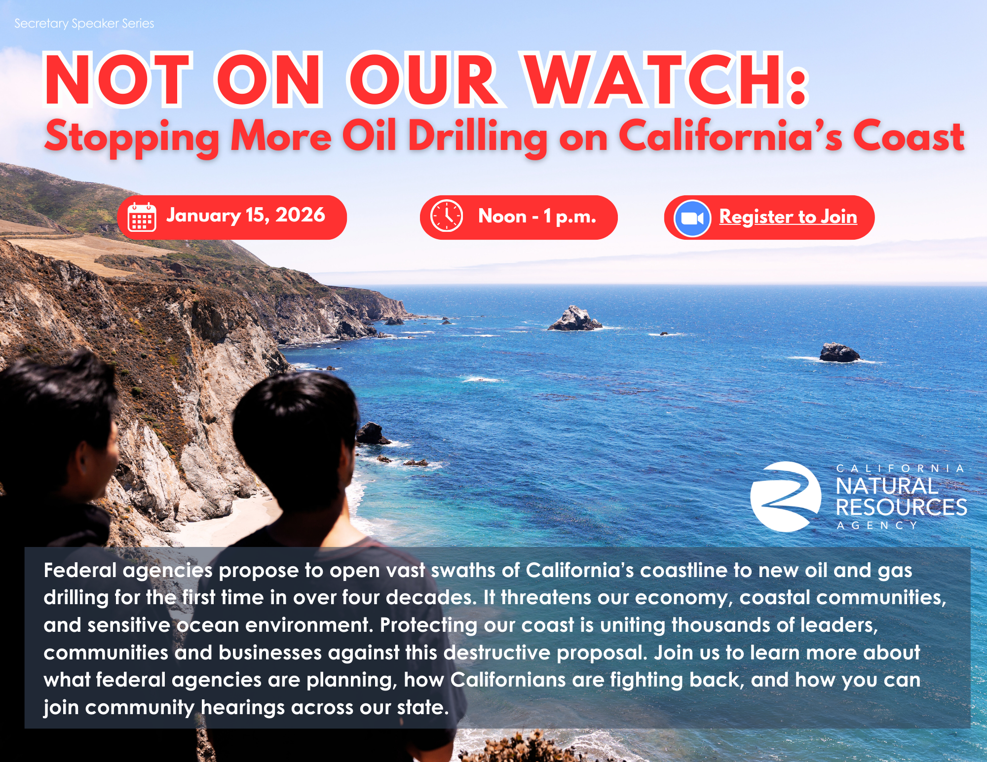 Not on our Watch: Stopping More Oil Drilling on California’s Coast: January 15 | noon to 1pm