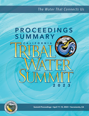 The 2023 Tribal Water Summit took place on April 11-13, 2023, at the New Natural Resources Building, 715 P Street Sacramento CA 95838. The Summit convened Tribal, State, and Federal leaders to discuss water issues and strategies towards watershed resilience of California’s sacred waters. The 2023 TWS Summit Proceedings helped inform State water policy and advanced issues of equity, access and incorporation of Tribal Ecological Knowledge in the California Water Plan Update 2023.